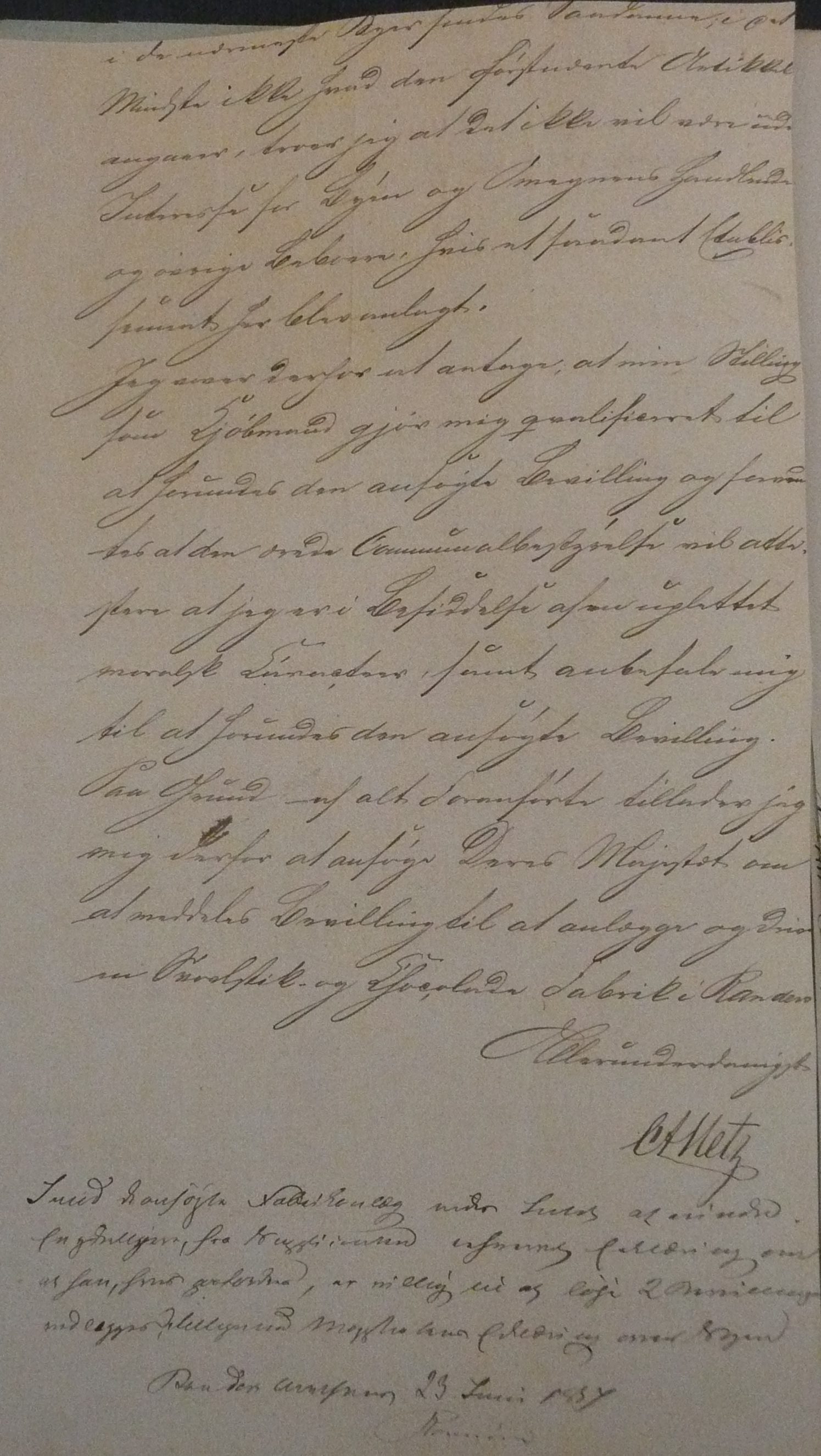 Carl Abraham Metz´s ansøgning til Kongen