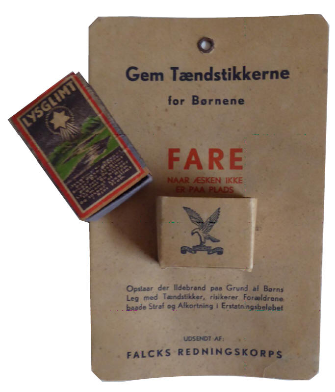 Falcks redningskorps udleverede denne til ophæng i hjemmet, i bestræbelserne på at undgå børns leg med ild.